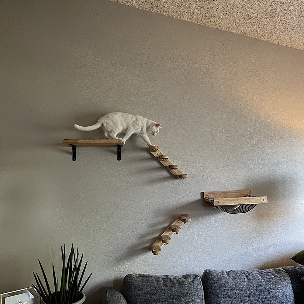 By installing our cat rack, you will provide your cat with a space of its own. They will no longer crawl onto your counters and leave furry marks on your kitchen countertops. Our cat wall shelves are beautifully designed and are sure to complement your decor.