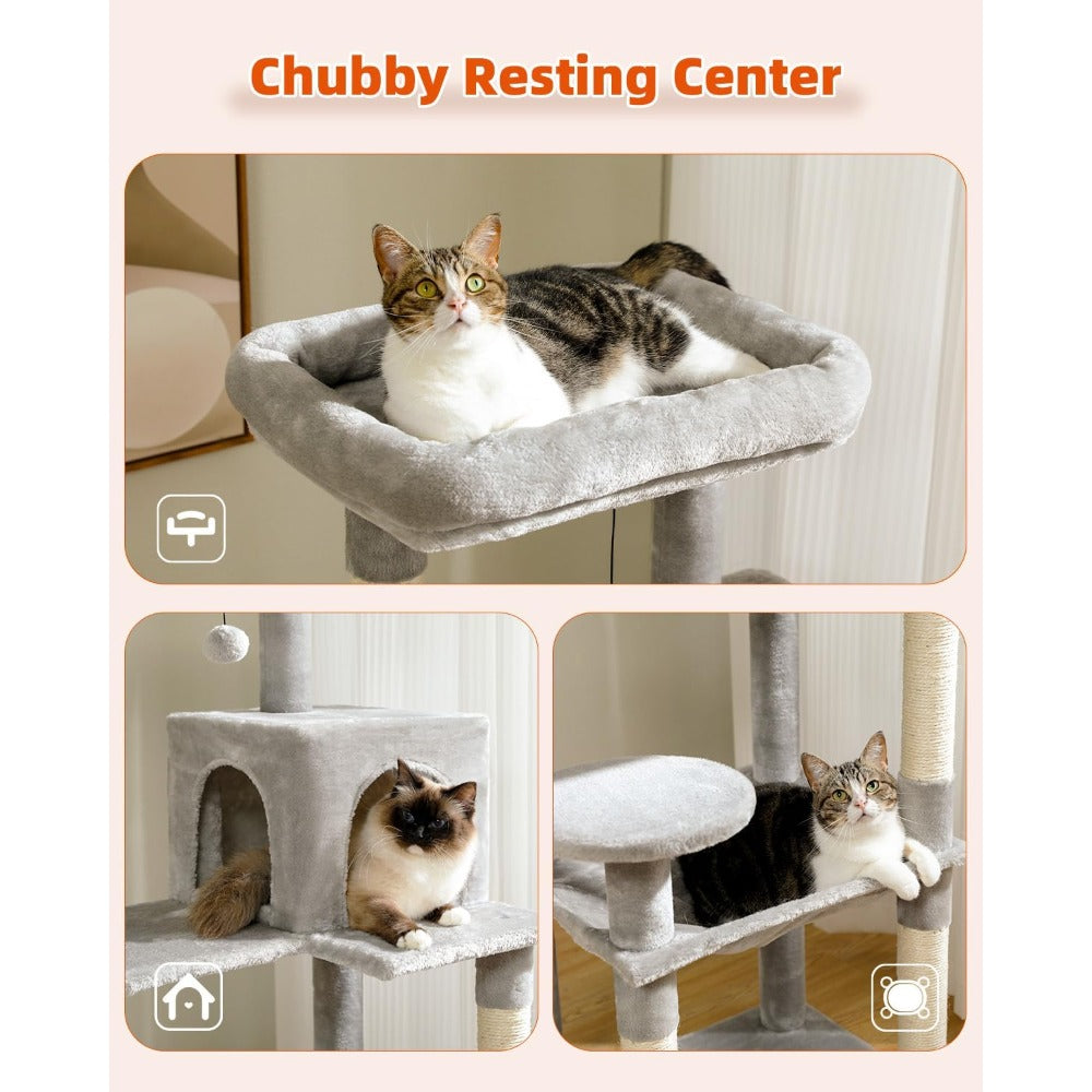 56.3'' Tall Cat Tree for Indoor Cats, Multi-Level Cat Tower with Super Large Hammock (20''X16''), Sisal Covered Scratching Posts